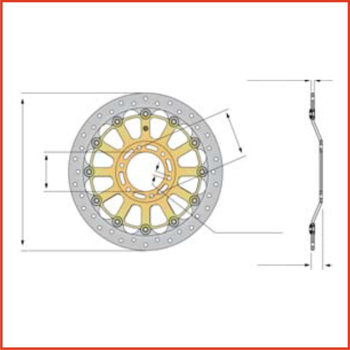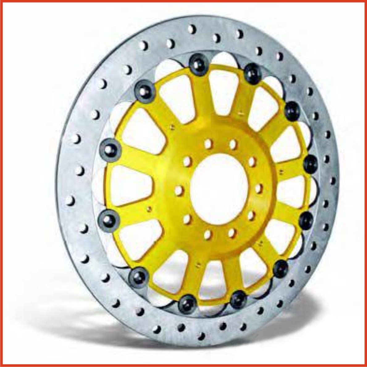 High quality brake discs for racing use, floating brake rings, with milled star out of high-strength aluminum.
