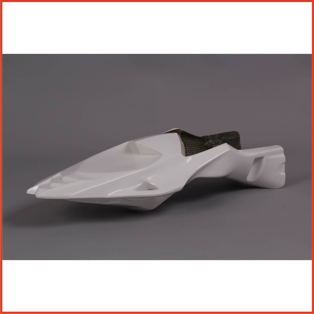 It comes in the base material GRP (fiberglass), the standard white Aral 9003 is UV stable, so there is no need to paint and is ready to use straight away. It is characterized by a smooth surface. Holes are drilled for attaching, but implied. fiberglass fairing Why? they mean up to 50% weight savings over the original ABS kapotám and are considerably cheaper. They are more flexible and easier to install on the motorcycle.
