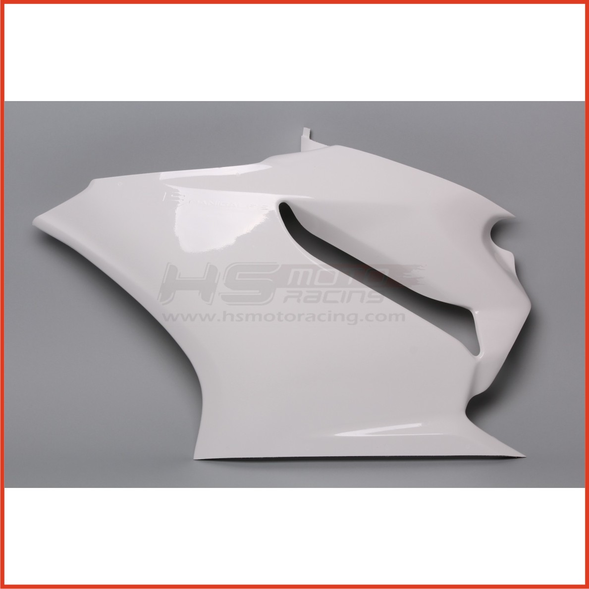 It comes in the base material GRP (fiberglass), the standard white Aral 9003 is UV stable, so there is no need to paint and is ready to use straight away. It is characterized by a smooth surface. Holes are drilled for attaching, but implied. fiberglass fairing Why? they mean up to 50% weight savings over the original ABS kapotám and are considerably cheaper. They are more flexible and easier to install on the motorcycle.