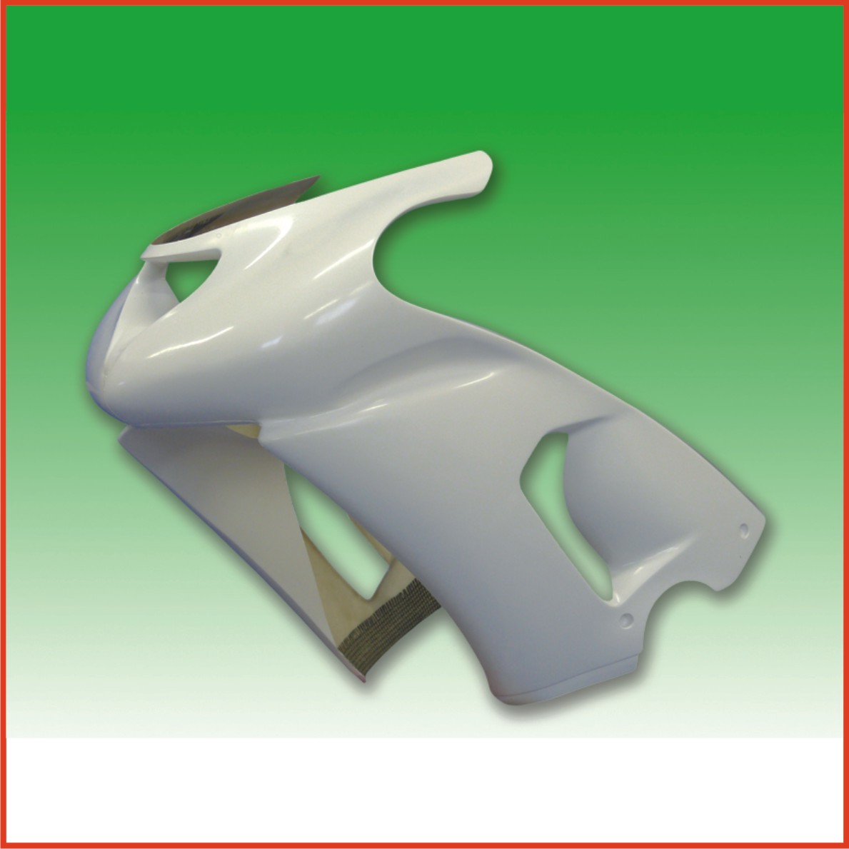 It comes in the base material GRP (fiberglass) has a standard white color Aral 9003 is UV stable, so there is no need to paint and is ready to use straight away. It is characterized by a smooth surface. Holes are drilled for attaching, but simply indicated. The top part can be used most original plexi. fiberglass fairing Why? They mean up to 50% weight savings over the original ABS kapotám and are much cheaper. They are more flexible and easier to install on the motorcycle.