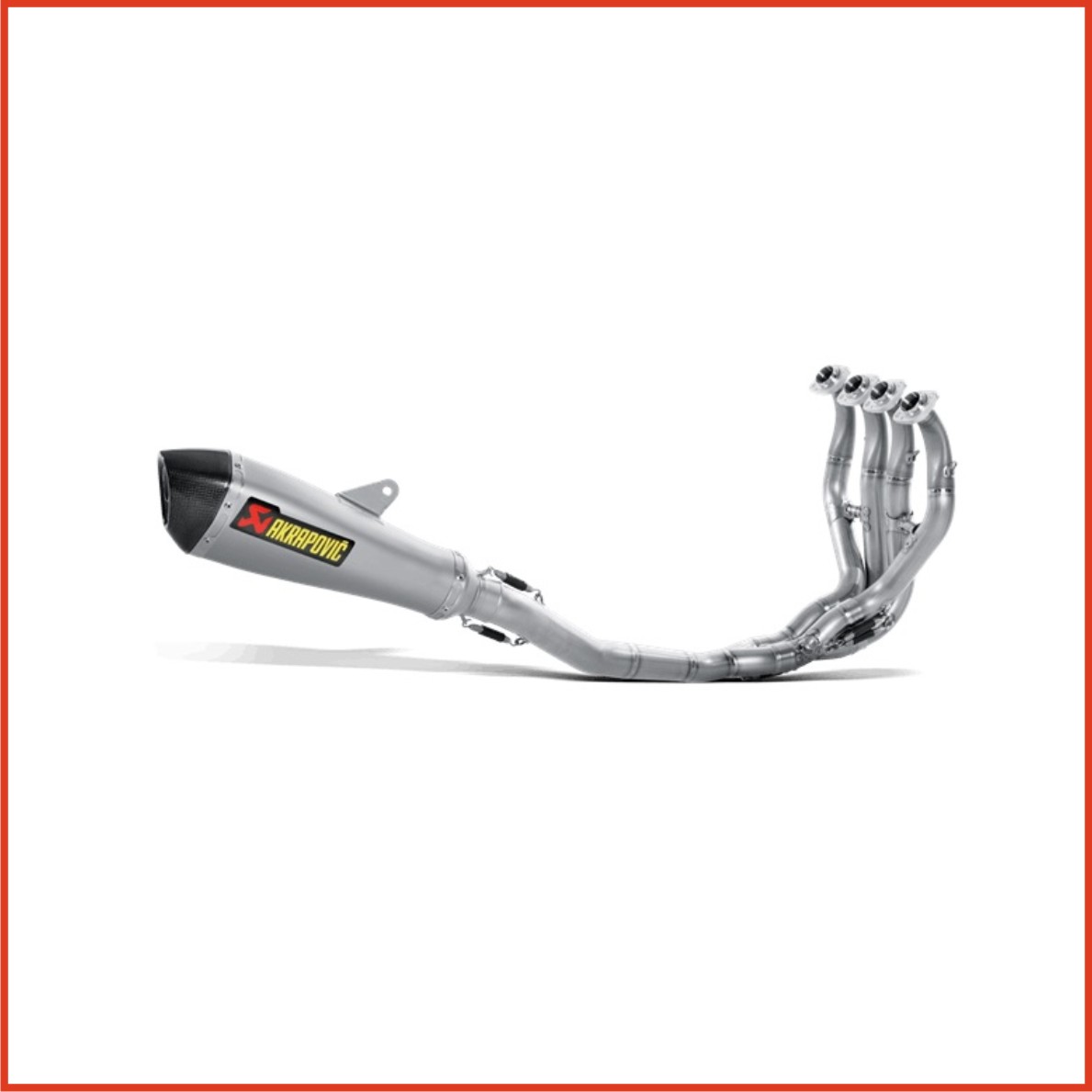The flagship of the Akrapovič exhaust system range, used and tested by our top factory teams in motorsport racing. It is simply the finest exhaust system available. Each model is unique and is dedicated to maximising the engineʼs performance while reducing everall weight for optimised handling of the whole motorcycle. It is made entirely of titanium, with the muffler outer sleeve available in carbon fire as well.