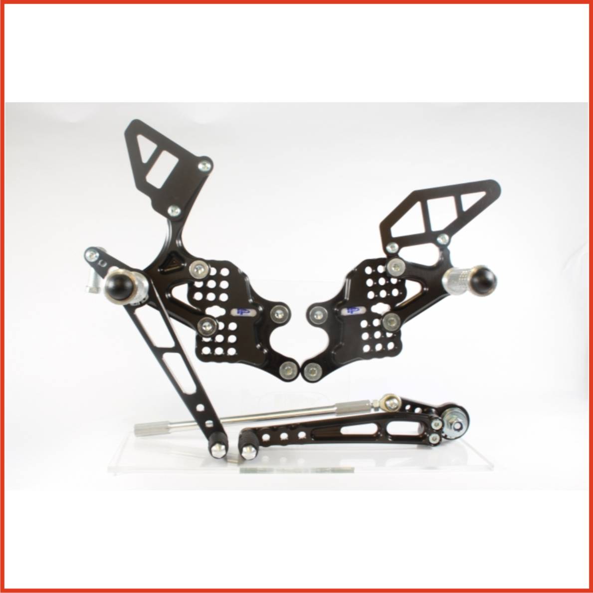 Fully adjustable rear set Factory. In levers BALL BEARINGS 22mm,carrying water resistant seals. Adjustable levers - according to the boots size. Hard anodizing - guarantees maximum firmness and very long service life. Ergonomic shape. Rich in lightening. Hard black anodized. Rear set is available for both, stock and reverse shifting as well. You can match the reverse shifting by turning the shifting joint (spacer) on the shifting shaft of 180°