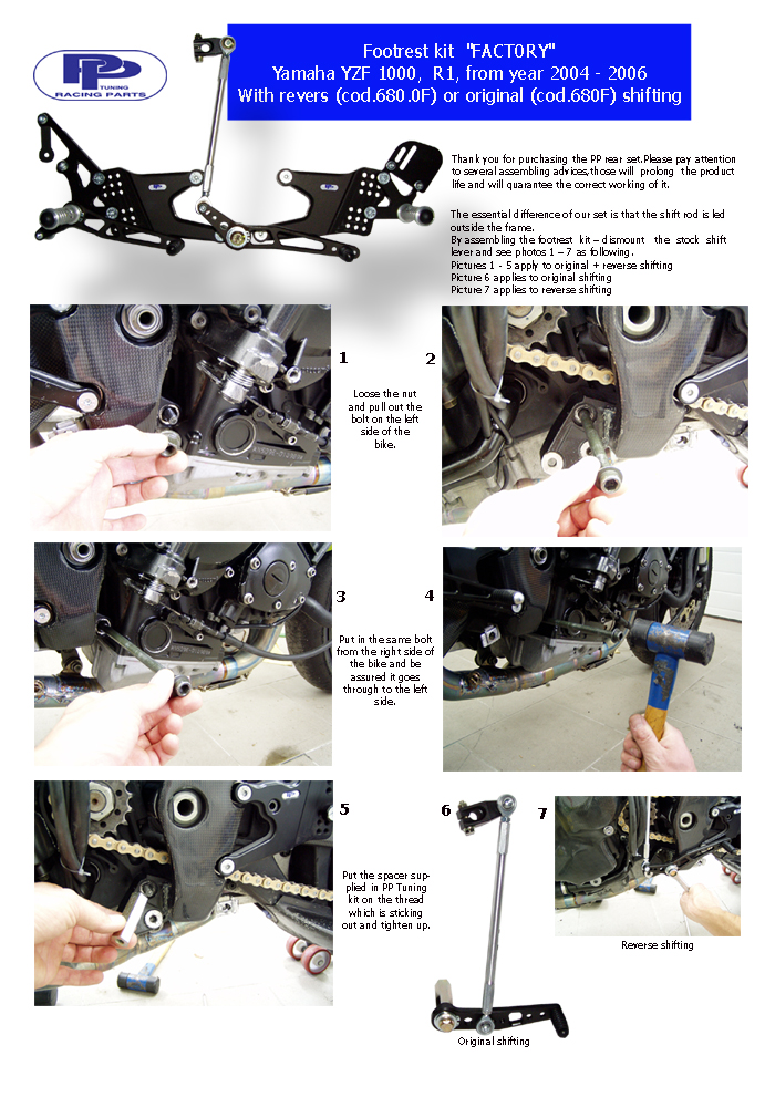 PP Tuning Rear set  Yamaha YZF R1 04-06 /reverse/