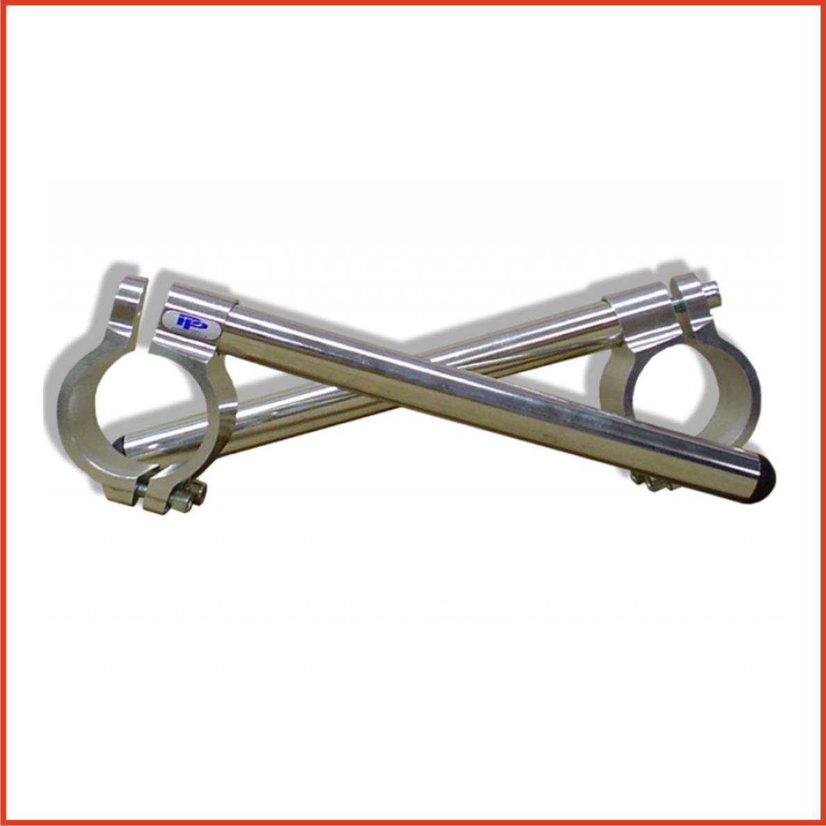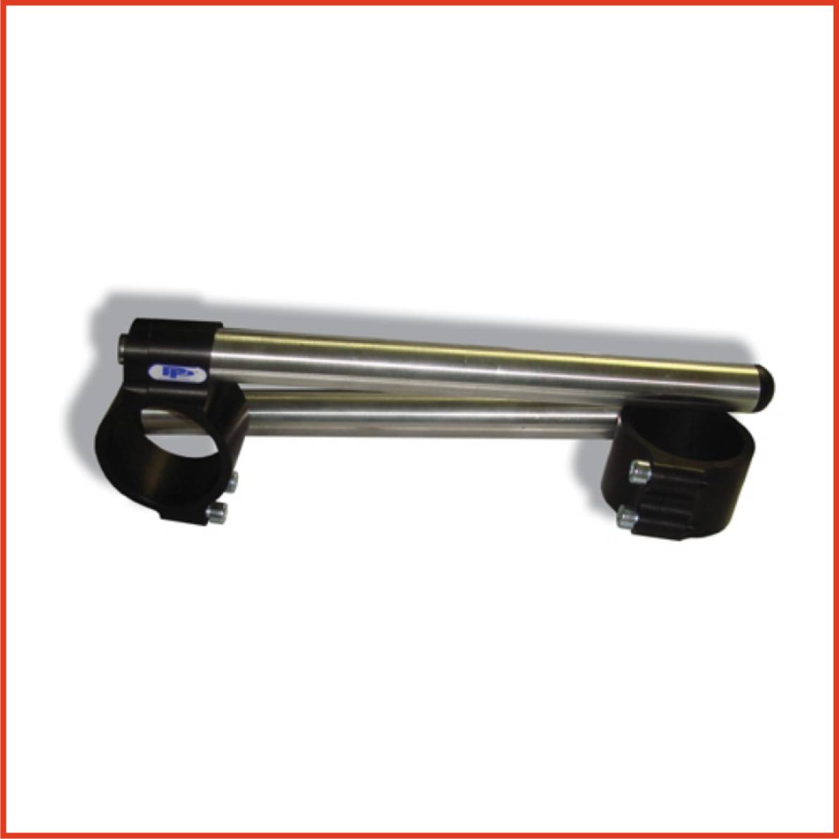 The handlebars are C.N.C. machined from solid billet aluminium ergal. The ergonomic riding angle improves driveability of the bike in racing conditions and can be easily mounted without the removal of the upper triple clamp. Grip inclination 10°