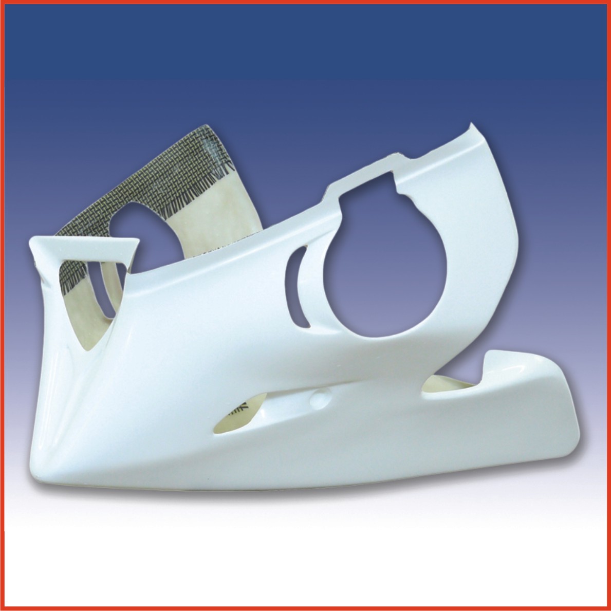 The lower part is supplied with pre-installed heat-resistant film that protects the bodywork from the heat of the exhaust pipe and the engine. Drain stopper ensures smooth fluid draining from the lower part of the washing machine. It comes in the base material GRP (fiberglass), the standard white Aral 9003 is UV stable, so there is no need to paint and is ready to use straight away. It is characterized by a smooth surface. Holes are drilled for attaching, but implied. fiberglass fairing Why? they mean up to 50% weight savings over the original ABS kapotám and are considerably cheaper. They are more flexible and easier to install on the motorcycle.