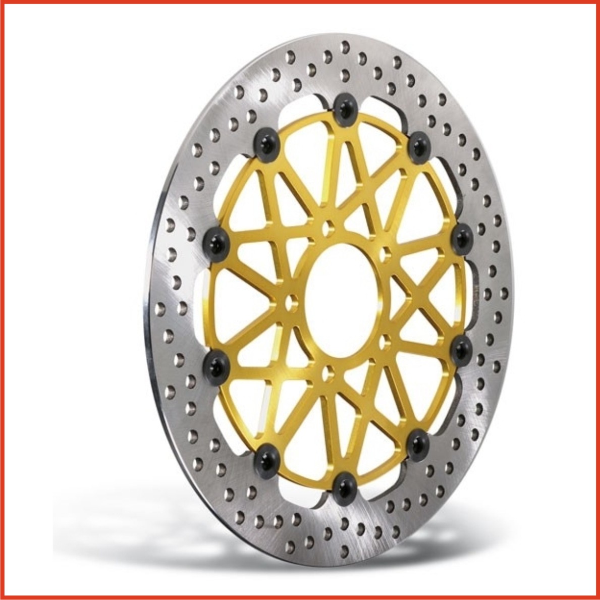 Developed with the precise goal of offering all owners of the most popular European and Japanese hypersports models maximum performance both on the road and on the track. The discs of the Supersport range are available with a larger than standard thickness of 5.5 mm. These are fully floating discs consisting of a rotor in tempered martensitic steel (capable of resisting extreme thermo-mechanical stress) and a hat machined from billet aluminium alloy. The two parts are joined together by 10 fastener studs in true racing style. The distinctive characteristic of a floating disc is that the rotor is not fixed to the aluminium hat - in other words, it is free to move on the studs. This configuration significantly reduces disc stress, reducing disc wear and improving heat dissipation, while also allowing the rotor the freedom to deform. Supersport discs are available with a rotor measuring 34 mm in width and 5.5 mm in thickness, and are fully interchangeable with the original components without any modifications.