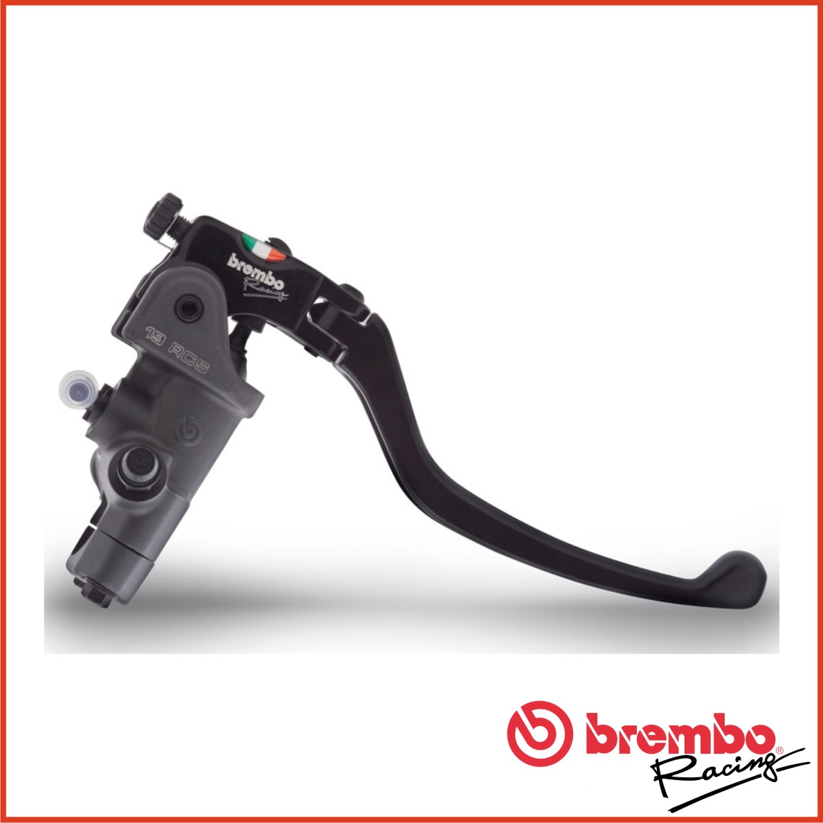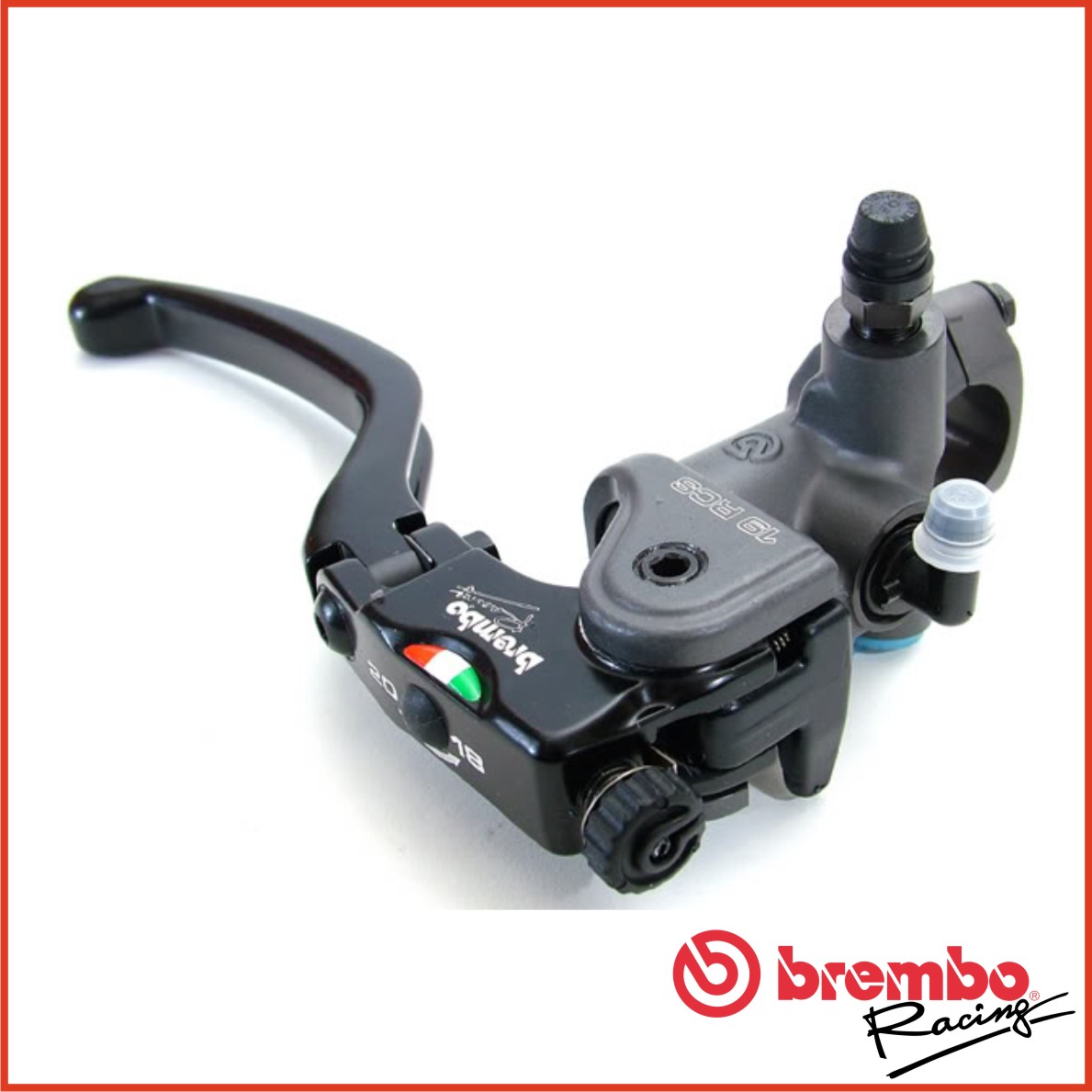 Brembo RCS radial brake master cylinders allow the rider to choose between power or precision in relation to road conditions, the weather, personal preference for feel and familiarity with the bike. This patented master cylinder, derived directly from the unit used in MotoGP, features an innovative adjustment system that allows the same master cylinder to cater for the many different requirements of even the most exacting customer. Created specifically to bring MotoGP and Superbike technology to countless enthusiasts, the Brembo RCS radial master cylinder sets new standards for high performance brake components in terms of technology and style. The RCS system consists of an adjuster that sets the brake lever pivot distance to either 18 or 20 mm, for the perfect feedback between rider and machine: setting the pivot distance to 20 mm makes the braking system more reactive and immediate, while a pivot distance of 18 mm makes it more precisely controllable. Changing between the two settings is extremely quick: simply adjust the master cylinder pivot distance by turning the adjuster on the front of the guide lever with cam mechanism by 180° using a screwdriver (red indicates 18 mm, black indicates 20 mm). This changes braking power distribution without modifying the pure power of the system itself.The piston, gaskets and push rod of RCS master cylinders are exactly the same components as those in the master cylinders used by practically all MotoGP and SBK riders, and are manufactured to extremely fine tolerances and ensure very low friction. The lever consists of two main components: the racing lever guide and the folding, forged lever itself. The RCS radial master cylinder is available in two different versions: 19 and 15. The numbers indicate the diameter of the piston and define the respective applications for the two versions: the 19RCS must be used in a dual disc system with 4-piston non-floating calipers, whereas the 15 RCS may be installed in single or dual disc systems with 4-piston floating calipers.
